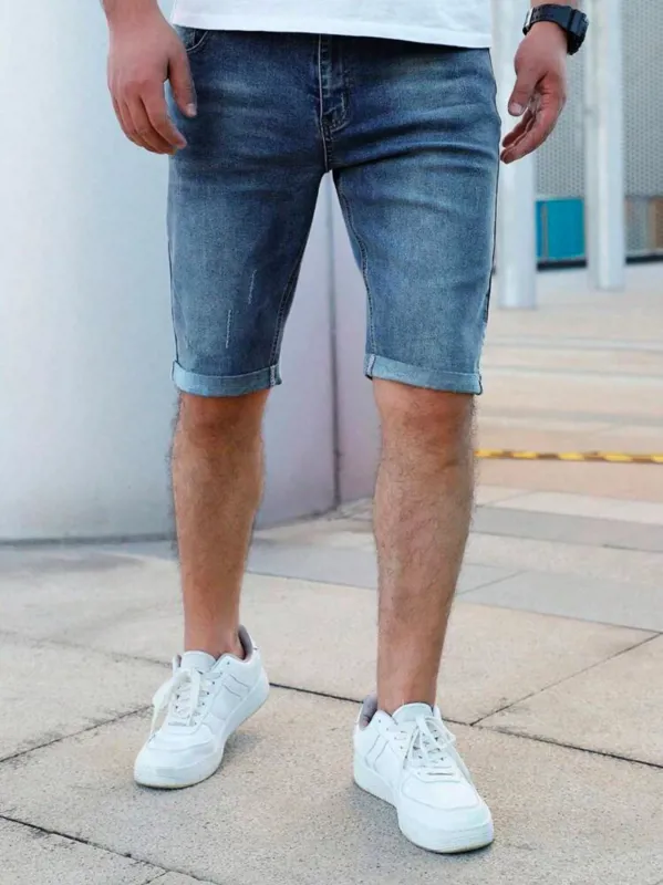 Men's Jeans with Pockets, Dark Blue Slim Fit Long Jeans, Washed Cargo Jeans